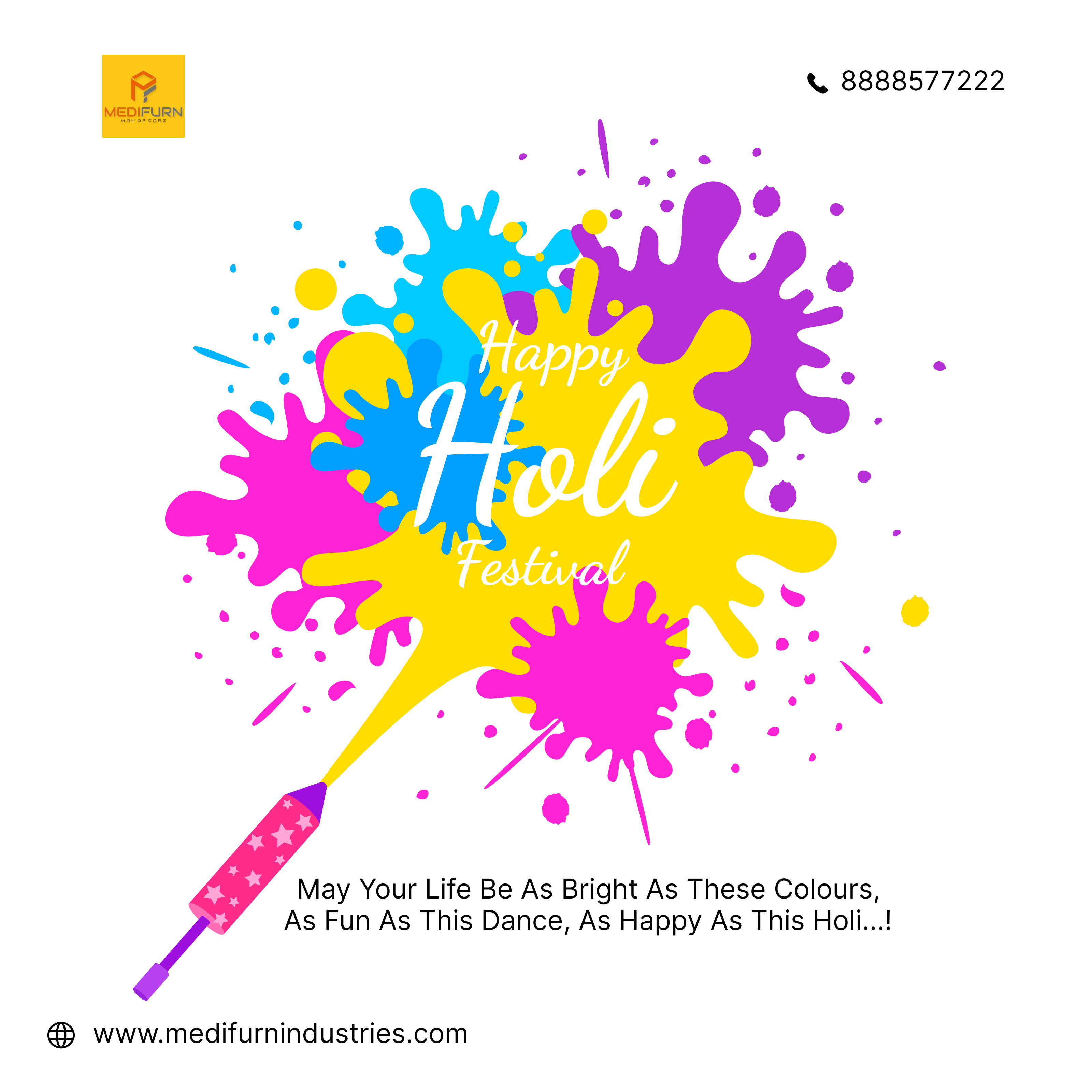 May the vibrant colors of Holi fill your heart with renewed energy and positivity. Wishing you a festive day full of laughter and fun! 🎊🌟 #Holi #FestivalOfColors #HoliHai #FestiveTimes #medifurnindustries
